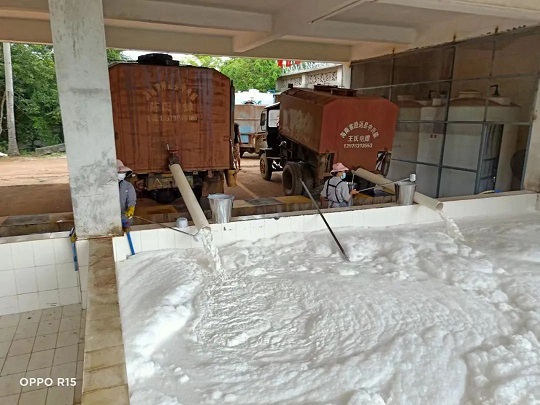 金福橡膠加工分公司員工正在裝運(yùn)濃乳。